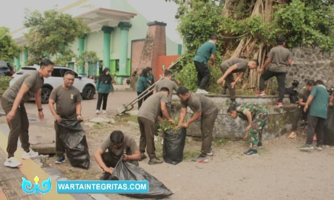 KLATEN – wartaintegritas.com – Kodim 0723/Klaten melaksanakan kegiatan pembersihan lingkungan di kawasan Stadion Trikoyo, Kabupaten Klaten sebagai bentuk kepedulian terhadap kebersihan dan kerapihan fasilitas umum yang menjadi pusat aktivitas olahraga dan rekreasi masyarakat. Kegiatan tersebut diikuti oleh personel TNI dan Pegawai Negeri Sipil (PNS) Kodim 0723/Klaten. Jumat (6/2/2026)