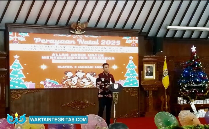 KLATEN – wartaintegritas.com — Keluarga besar Dinas Kesehatan (Dinkes) Kabupaten Klaten bersama KORPRI dan unsur rumah sakit (RSBW, RSCH, RSJD Sujarwadi, serta Balkesmas) menggelar perayaan Natal 2025 di Pendopo Pemerintah Kabupaten Klaten pada hari Kamis  (8/1/2026).